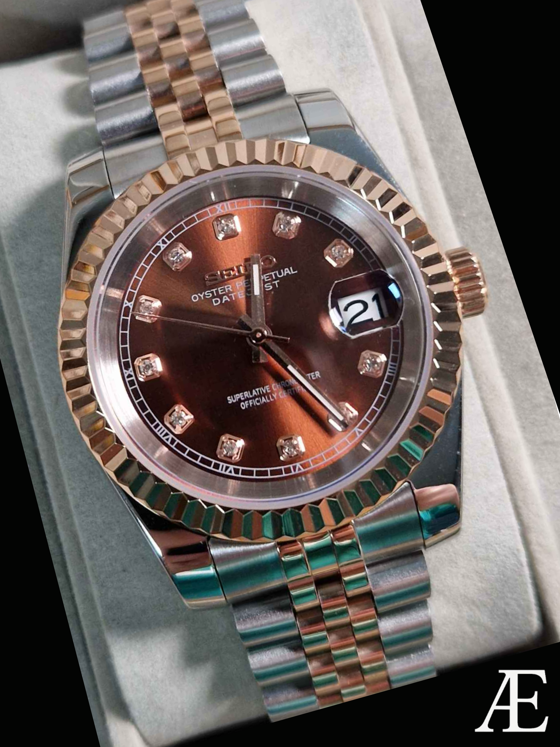• Boîtier en acier/or rose inoxydable 40mm étanche avec couronne vissée